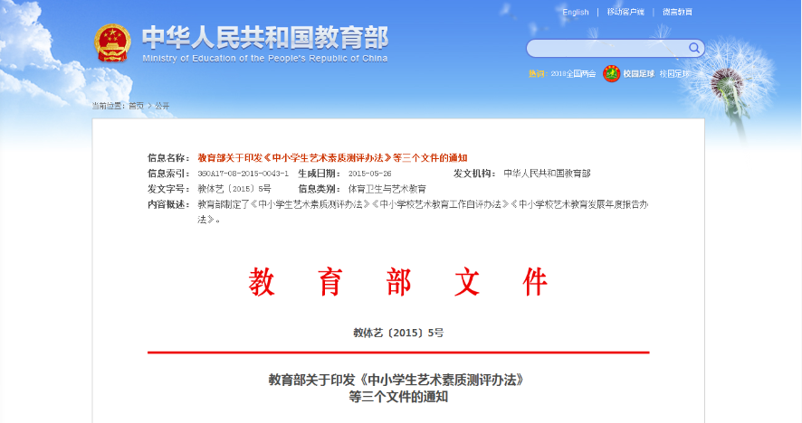 解读:原来国务院办公厅的文件里头还专门提出了“各地要开展中小学生艺术素质测评”这个意见。